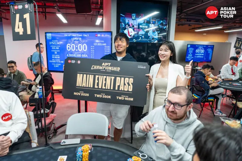 Some other notables who will be taking theirs seats on the felt include India's Nishant Kumar (2,615,000), APT regular Robert Nemeskeri-Kiss (2,100,000), Peter Kiem (1,095,000), the 2024 APT Taipei Main Event runner-up Abraham Ceesvin (1,025,000) Poland's Dawid Smolka (970,000), and short stacked Zhen Dong (345,000).