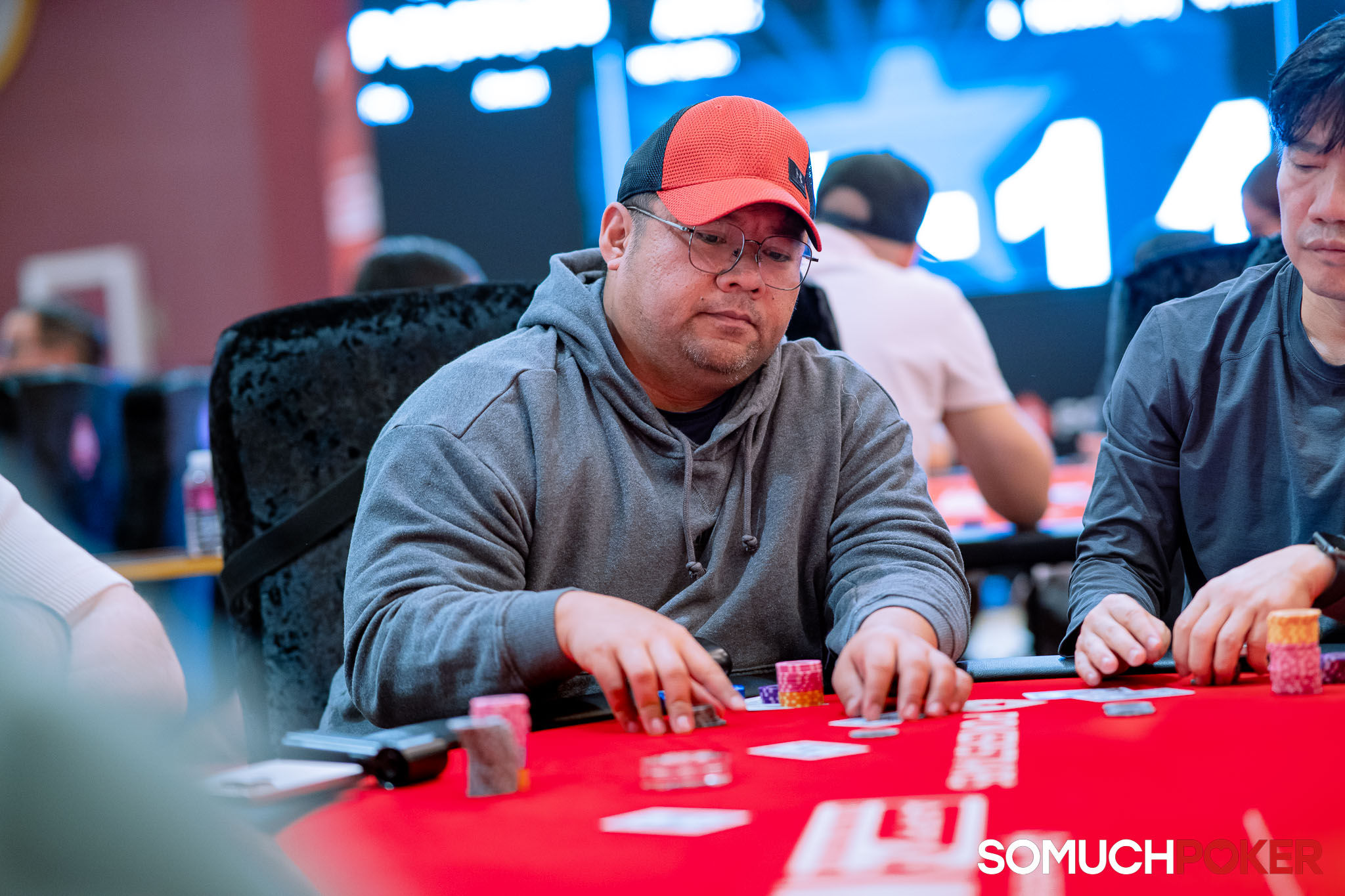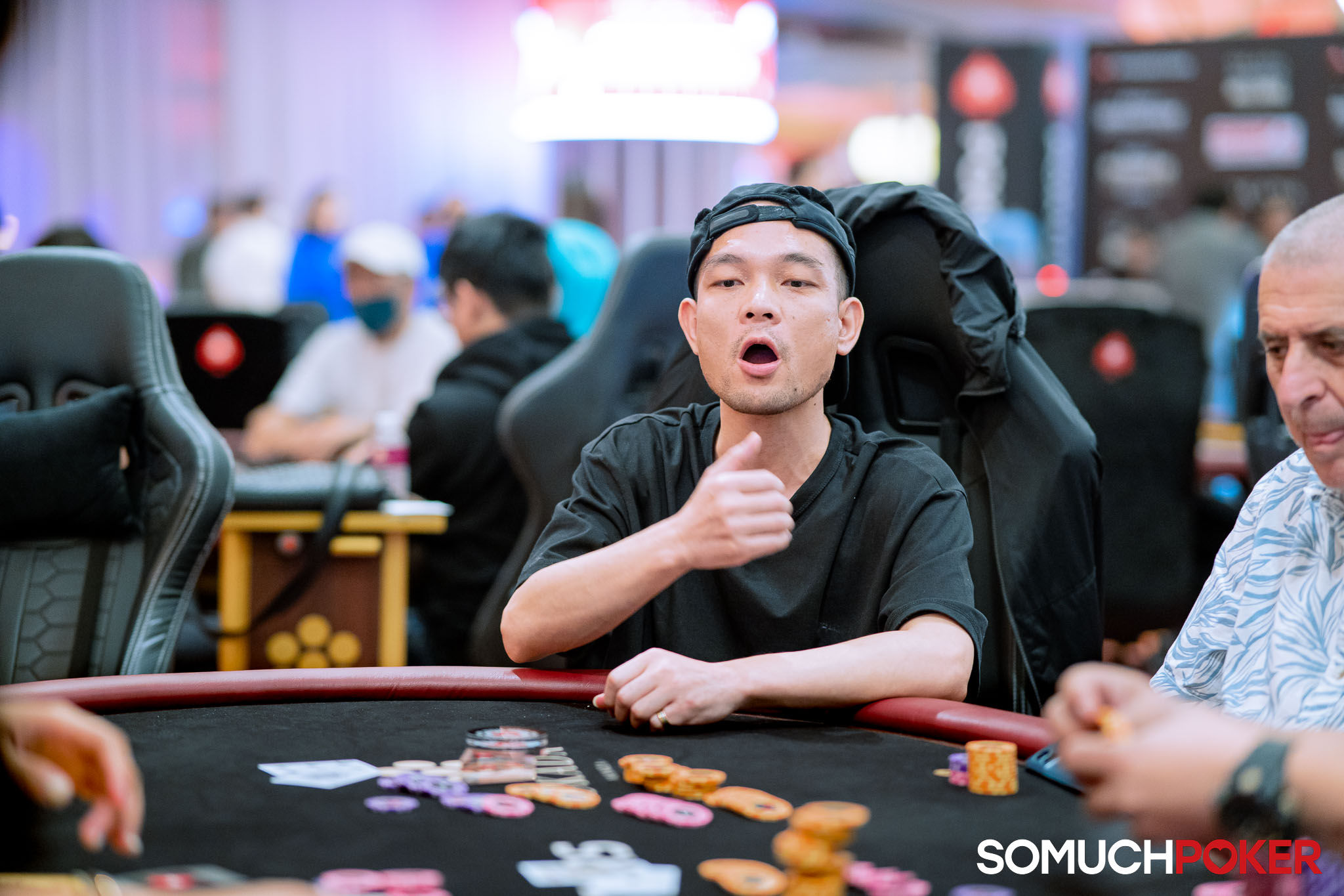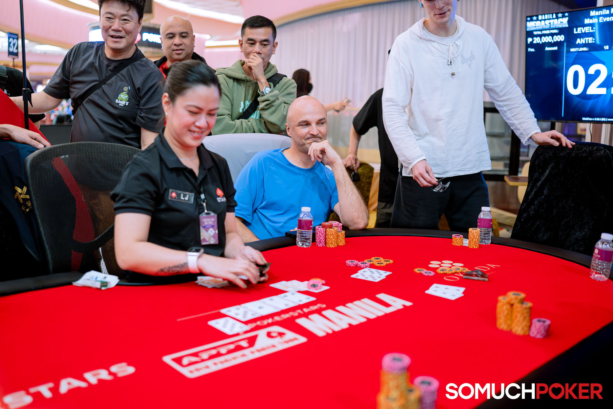 The tournament director has announced "Shuffle up and deal!" and Flight B of the Manila Megastack 24 Main Event is officially on its way.