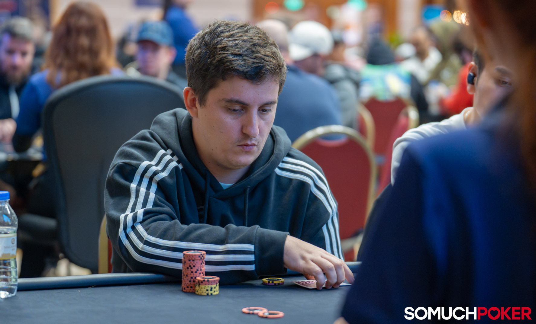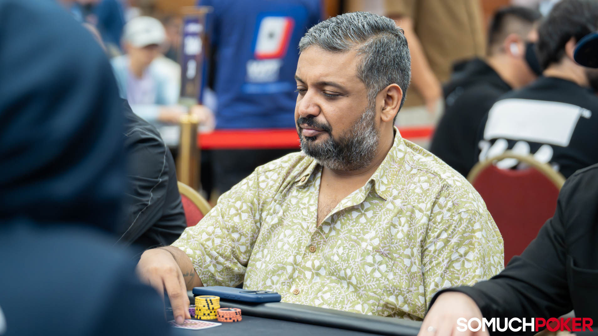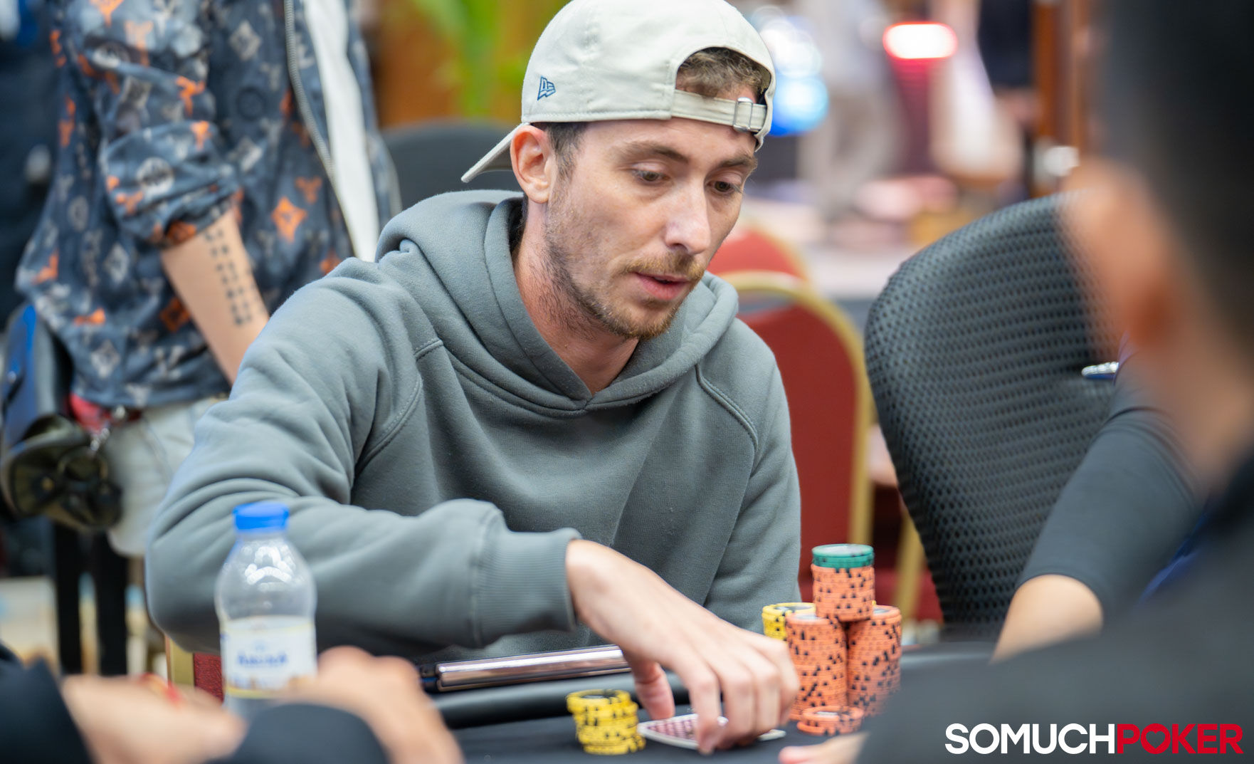 With two more levels remaining before registration closes, the field currently stands at 115 entries, with 82 players seated. Play today will continue down to the money.